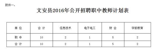 河北省廊坊市文安縣2016年職中教師招聘計(jì)劃表(10名)