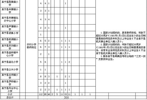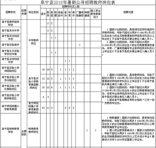江蘇省鹽城市阜寧縣2016年暑期教師招聘崗位表(300名)