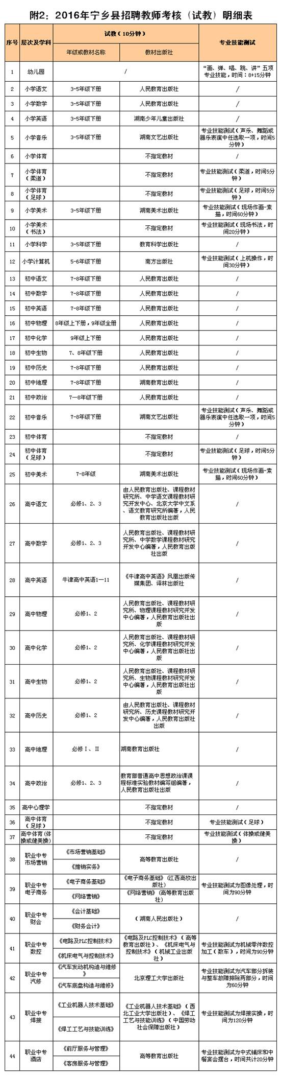 根據(jù)《寧鄉(xiāng)縣2016年公開招聘中小學(xué)和幼兒園教師公告》規(guī)定,寧鄉(xiāng)縣2016年公開招聘中小學(xué)和幼兒園教師(含衛(wèi)計(jì)學(xué)前教育)考核(試教、專業(yè)技能測(cè)試)定于2016年5月29日在寧鄉(xiāng)縣玉潭鎮(zhèn)中心小學(xué)(寧鄉(xiāng)縣玉潭鎮(zhèn)春城北路)進(jìn)行,請(qǐng)各位通過資格復(fù)審(資格復(fù)審時(shí)間為2016年5月26日)入圍考核(試教)的考生攜帶有效居民身份證、考核通知(資格復(fù)審時(shí)發(fā)放)于5月29日上午7:00前到達(dá)寧鄉(xiāng)縣玉潭鎮(zhèn)中心小學(xué)升旗坪集合,參加考核。參加音、體、美、幼兒園教師崗位考生需自帶相關(guān)專業(yè)技能測(cè)試用品。請(qǐng)各位考生作好自身準(zhǔn)備并按時(shí)參加,遲到即視同放棄考核資格。