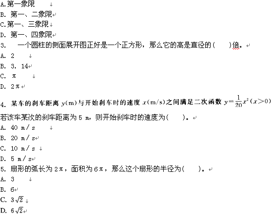 一、單項選擇題(在每小題的四個備選答案中,選出一個符合題意的正確答案,并將其選項寫在題干后的括號內(nèi)。本大題共5小題,每小題°分,共5分)