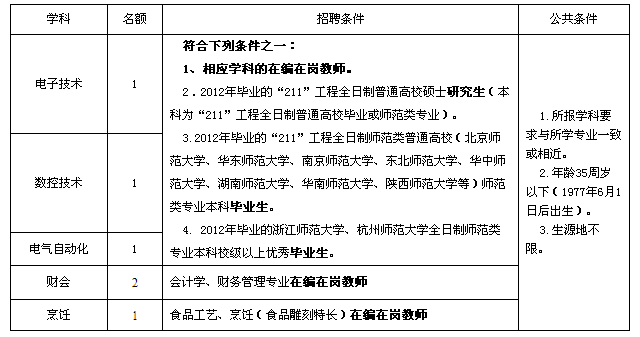 為進(jìn)一步優(yōu)化我校專業(yè)課師資隊(duì)伍,推動我?焖俳】蛋l(fā)展,經(jīng)縣教育局、縣人力資源和社會保障局同意,決定招聘專業(yè)課教師6名,F(xiàn)將有關(guān)事項(xiàng)公告如下: