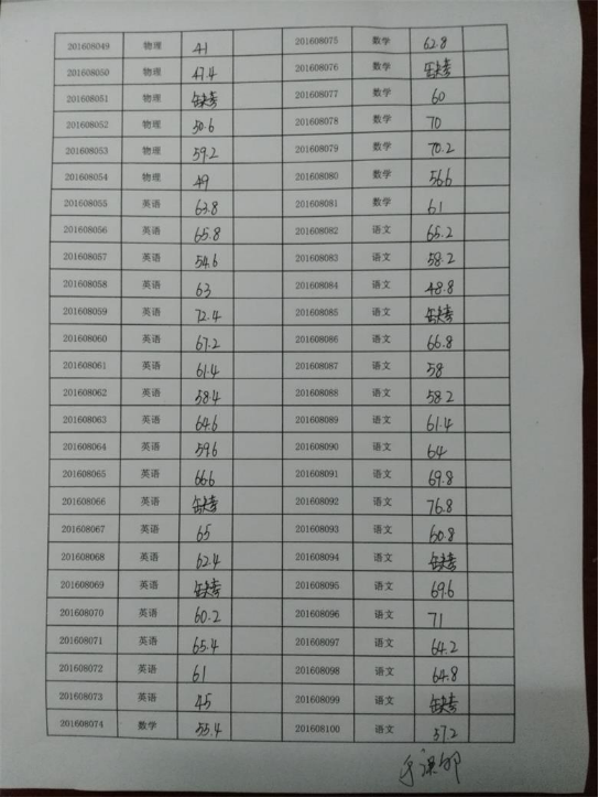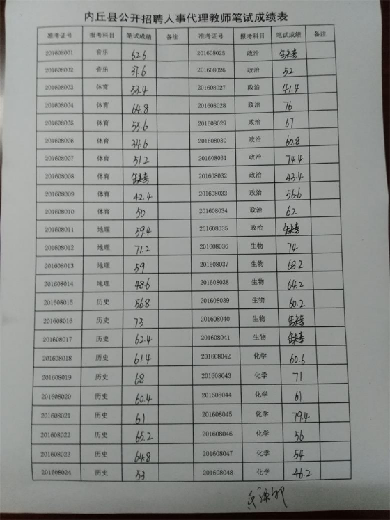 2016年河北省邢臺市內(nèi)丘縣教師招聘筆試成績表