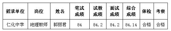 仁化縣2016年公開招聘仁化中學教師擬聘人員名單公示2