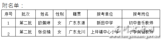 2016年龍川縣公開招聘教師擬聘用人員公示(第三批)