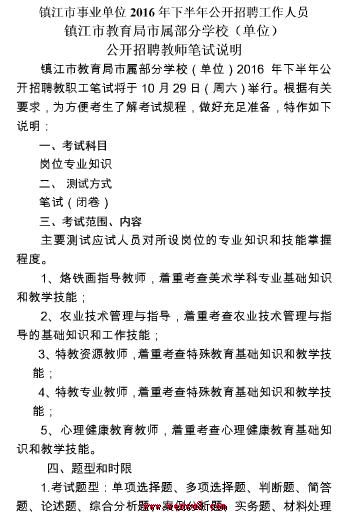 2016年江蘇省鎮(zhèn)江市教師招聘筆試說(shuō)明