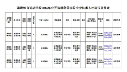 附:承德體育運(yùn)動(dòng)學(xué)校2016年公開選聘急需崗位專業(yè)技術(shù)人才崗位條件表