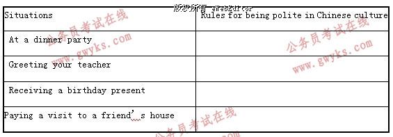 1. The teacher tells a story of a Chinese at a Western dinner party who made a fool of himself due to the lack of cultural background. The story is: Once a Chinese was invited to an American dinner party. When he saw the napkin on the table, he tied it around his neck just as Chinese parents do to their children when they' re fed. As a result, he made a fool of himself.