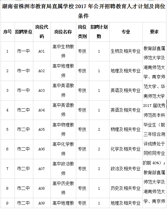 株洲市教育局直屬學(xué)校公開招聘教師簡(jiǎn)章