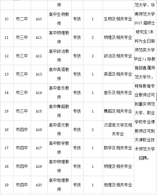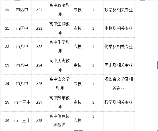 招聘直屬學(xué)校各學(xué)科任課教師若干名(詳見下表)。
