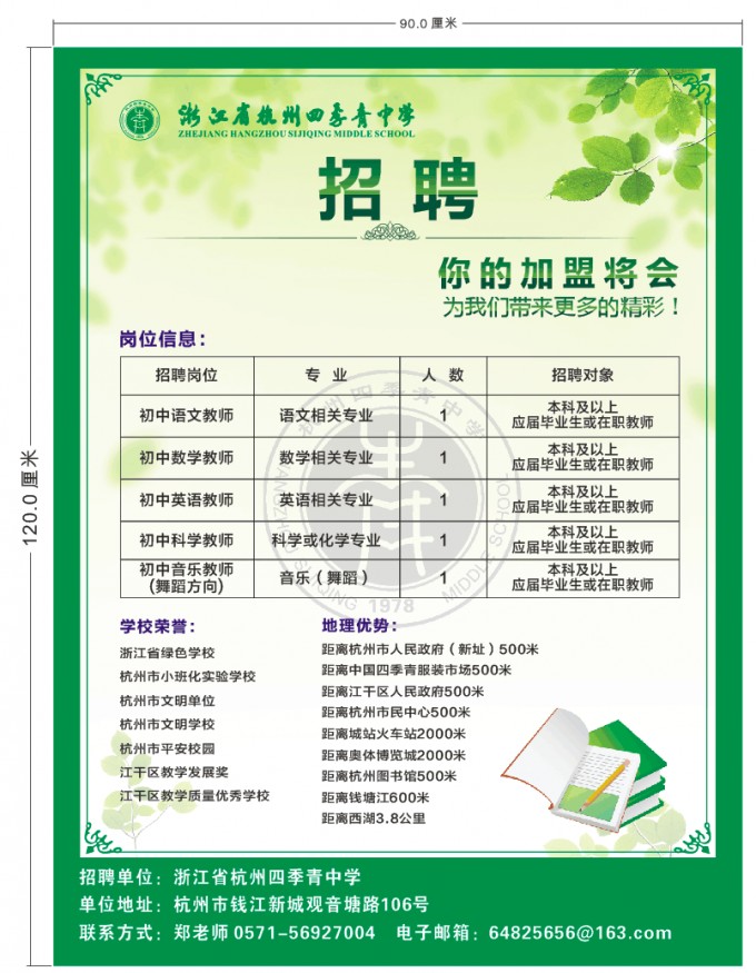 2016年浙江省杭州四季青中學(xué)教師招聘公告