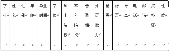 6、“外語能力”一欄,指英語四六級考試的分數(shù)或等級,英語老師請?zhí)顚憣I(yè)英語級別。