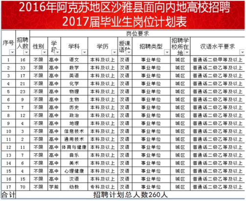 沙雅縣教育局赴內(nèi)地高校招聘2017屆畢業(yè)生工作的公告