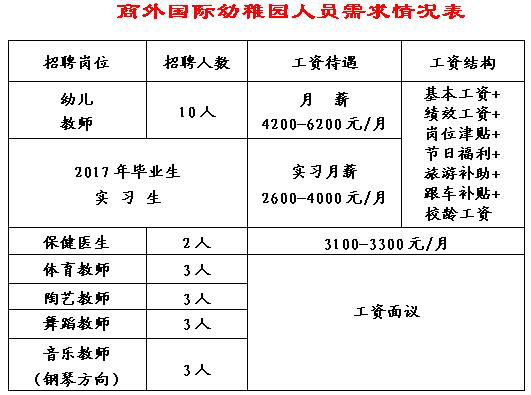 商外國際幼稚園教師招聘啟事(2017年02月06日)