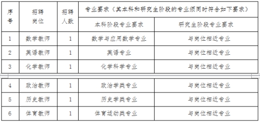 古田一中高中數(shù)學教師1人、高中英語教師1人、高中化學教師1人、高中政治教師1人、高中歷史教師1人、高中體育教師1人。
