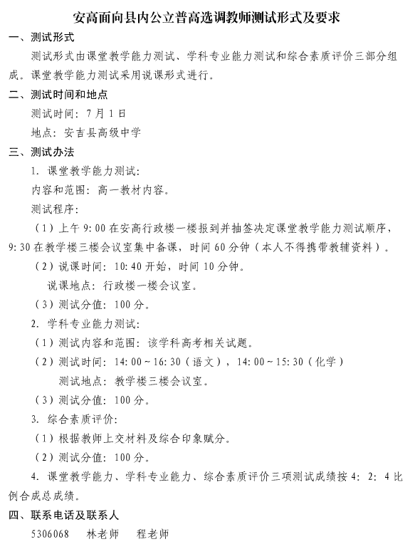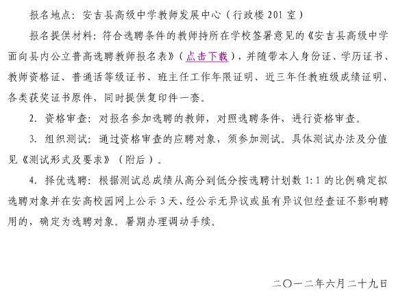 浙江省湖州市安吉縣高級中學(xué)面向縣內(nèi)公立普高選聘教師公告