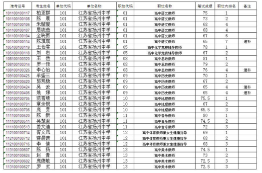 江蘇省揚州中學(xué)2017年公開招聘教師面試人員名單