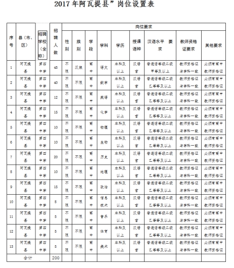 2017年阿瓦提縣赴內(nèi)地自主招聘教師標(biāo)準(zhǔn)及待遇
