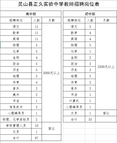 附 件:靈山縣正久實(shí)驗(yàn)中學(xué)教師招聘崗位表