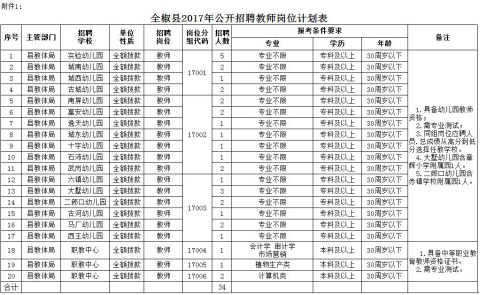 附件:1.全椒縣2017年公開招聘教師崗位計(jì)劃表
