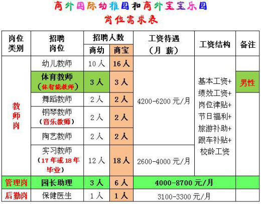 3、其他要求:有一定的教齡,具有文藝特長(zhǎng)、幼兒英語(yǔ)教學(xué)和蒙氏教學(xué)經(jīng)驗(yàn)的同等情況下優(yōu)先考慮。