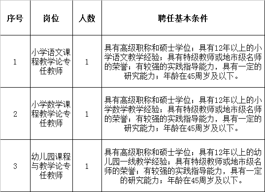 報(bào)名方式:應(yīng)聘者完整填寫《臺(tái)州學(xué)院專任教師崗位應(yīng)聘報(bào)名表》(見附件)和自制的個(gè)人簡(jiǎn)歷,并提供支撐材料電子版(掃描成PDF格式):1、身份證;2、初始學(xué)歷以來的學(xué)歷學(xué)位證書;3、專業(yè)技術(shù)資格證書;4、科研(教學(xué))成果;5、獲獎(jiǎng)證書(證明);6、科研(教學(xué))項(xiàng)目立項(xiàng);7、結(jié)題證書;8、其它能反映個(gè)人情況和證明水平的材料。將《臺(tái)州學(xué)院專任教師崗位應(yīng)聘報(bào)名表》、個(gè)人簡(jiǎn)歷和支撐材料電子稿發(fā)至郵箱tzxyzp@163.com。應(yīng)聘電子郵件主題應(yīng)寫明“應(yīng)聘小學(xué)(幼兒園)課程教學(xué)論教師”。