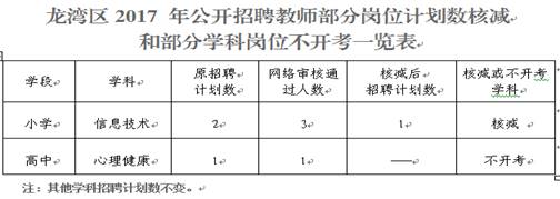 關(guān)于龍灣區(qū)2017年公開招聘教師部分崗位計劃數(shù)核減和部分崗位不開考的通告