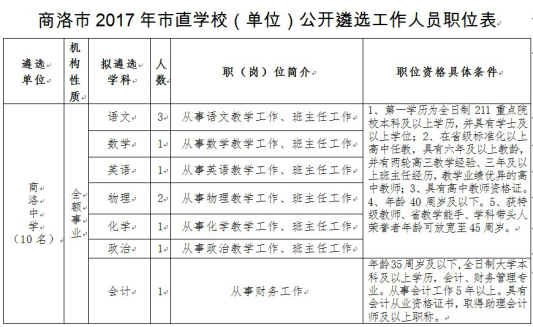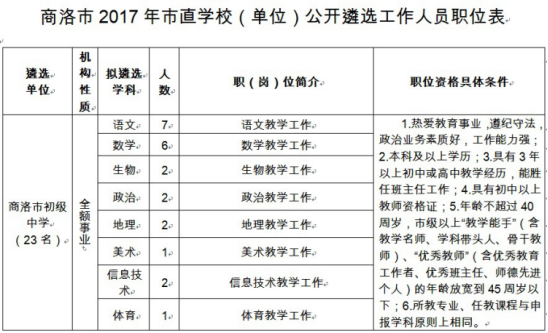 市人社局、市教育局于2017年8月4日通過商洛市人力資源和社會保障局、商洛市教育局網(wǎng)站發(fā)布公告,公布選聘職位。