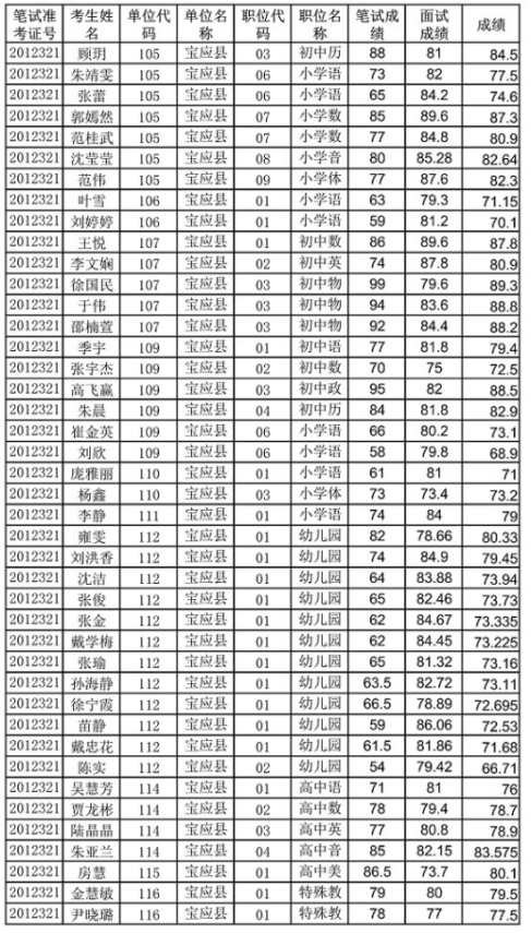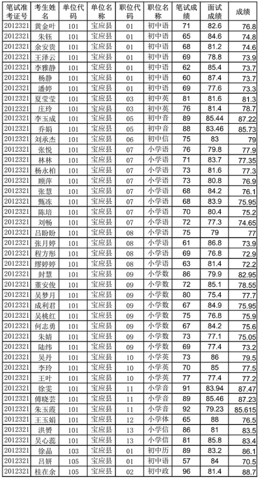 寶應(yīng)縣2017年7月公開(kāi)招聘教師體檢合格人員名單(一)