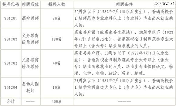 全縣計(jì)劃招聘教師300名,其中高中教師70名,義務(wù)教育階段教師220名,縣幼兒園教師10名。