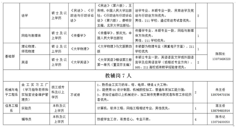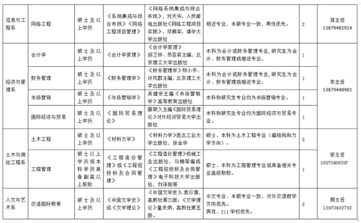 (一)教師崗:1、要求全日制碩士研究生學(xué)歷;