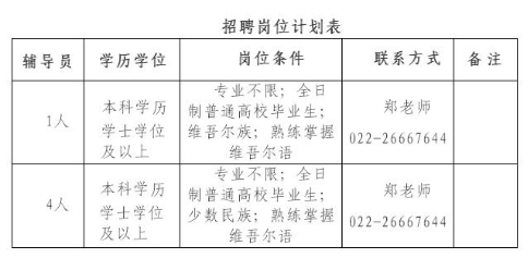 根據(jù)《天津市事業(yè)單位公開招聘人員實(shí)施辦法》等有關(guān)文件要求,結(jié)合高校人員需求實(shí)際情況,擬面向社會(huì)公開招聘專職少數(shù)民族輔導(dǎo)員,現(xiàn)將有關(guān)事項(xiàng)公告如下: