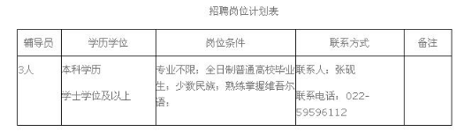 根據(jù)《天津市事業(yè)單位公開(kāi)招聘人員實(shí)施辦法》等有關(guān)文件要求,結(jié)合高校人員需求實(shí)際情況,我校擬面向社會(huì)公開(kāi)招聘專(zhuān)職少數(shù)民族輔導(dǎo)員,現(xiàn)將有關(guān)事項(xiàng)公告如下: