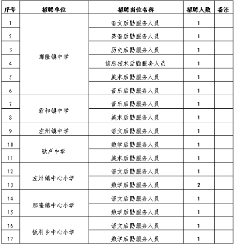 2017年江州區(qū)鄉(xiāng)鎮(zhèn)中小學(xué)編外后勤服務(wù)人員招聘公告