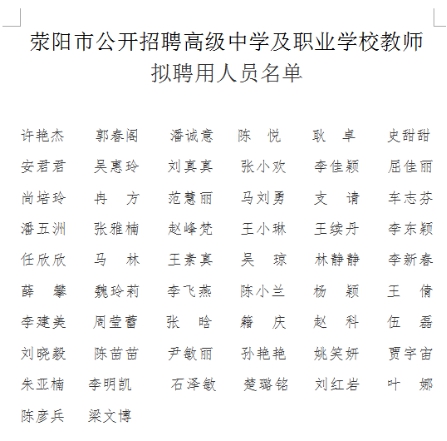 附件:滎陽市公開招聘高級中學(xué)及職業(yè)學(xué)校教師擬聘用人員名單(共56名)