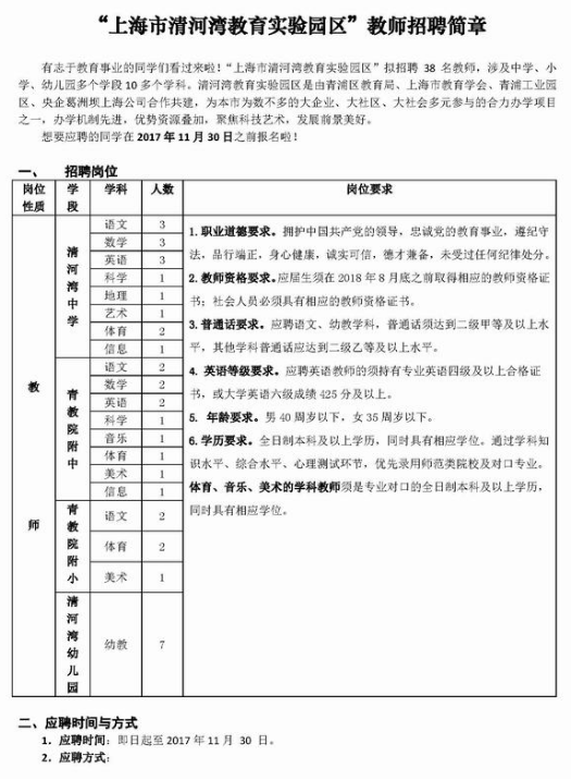 2018年上海市青浦區(qū)清河灣教育實驗園教師招聘遞交材料要求.docx