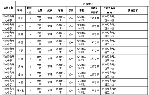 吸引內(nèi)地本科以上師范類(lèi)院校、綜合院校師范專(zhuān)業(yè)的畢業(yè)生來(lái)阿合奇縣就業(yè)。應(yīng)聘人員應(yīng)符合以下條件: