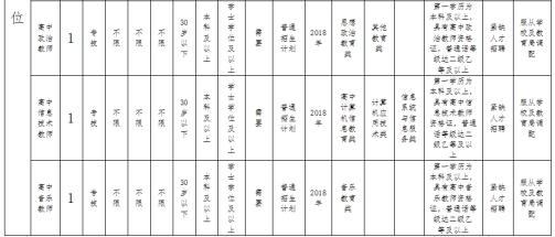 省內(nèi)外重點大學(xué)全日制普通高等院校,初始本科及其以上學(xué)歷,年齡在30周歲以下,具有高中教師資格證,取得學(xué)士及以上學(xué)位,且學(xué)習(xí)成績平均達良好以上,具備招聘崗位所需條件的2018年應(yīng)屆畢業(yè)生。