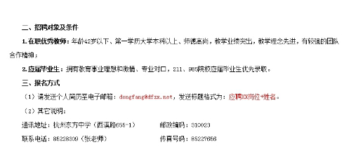 杭州東方中學(xué):招聘信息