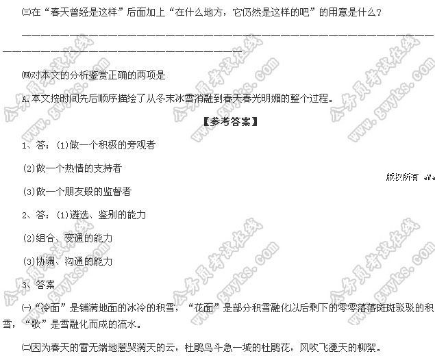 3、閱讀短文,回答以下問(wèn)題(10分)