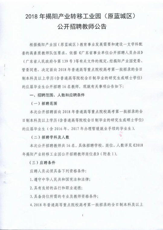 附件:2018年揭陽產(chǎn)業(yè)轉(zhuǎn)移工業(yè)園公開招聘教師崗位表.xls