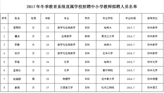 附件:2017年冬季教育系統(tǒng)直屬學(xué)校招聘中小學(xué)教師擬聘人員名單