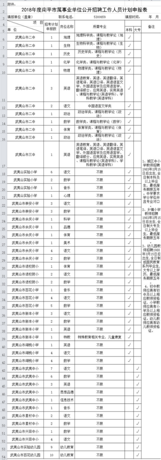 附件2:2018年武夷山市中小學(xué)幼兒園新任教師招聘職位簡(jiǎn)章