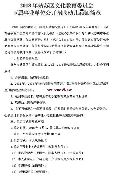 2018年江蘇省蘇州市姑蘇區(qū)幼兒教師招聘簡章