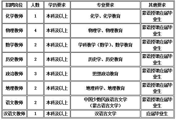 2.教育部直屬師范類院校或重點(diǎn)院校(高中階段為蒙古語(yǔ)授課)應(yīng)屆優(yōu)秀畢業(yè)生(本科、研究生)。