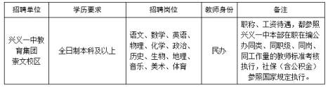 到興義一中教育集團(tuán)崇文校區(qū)工作,教師的職稱、工資、薪酬待遇都參照興義一中本部在職在編公辦同類、同職級、同崗、同工作量的教師標(biāo)準(zhǔn)考核執(zhí)行,社保(含公積金)參照國家規(guī)定執(zhí)行。年薪6—10萬元。