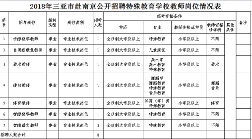6.符合《2018年三亞市赴南京公開招聘特殊教育學(xué)校教師崗位情況表》所規(guī)定的各項(xiàng)條件;