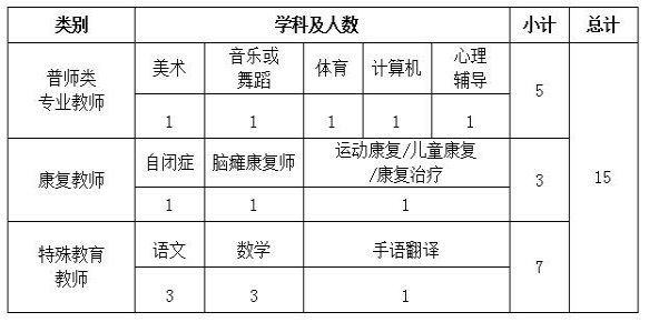 ⑵學(xué)歷及專業(yè)條件:普師類專業(yè)教師須具有普通全日制大專以上學(xué)歷,專業(yè)對口,且具有相應(yīng)專業(yè)教師資格證書;康復(fù)教師、特殊教育教師須具有師范類普通全日制特殊教育專業(yè)大專以上學(xué)歷,專業(yè)對口,且具有特殊教育類教師資格證書。