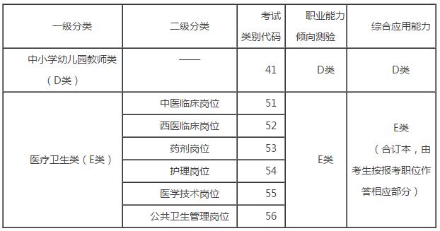 事業(yè)單位公開招聘考試分類表