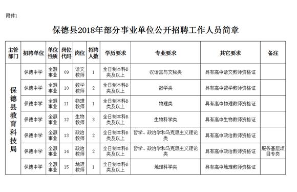 2018年山西忻州保德事業(yè)單位招聘教師職位表