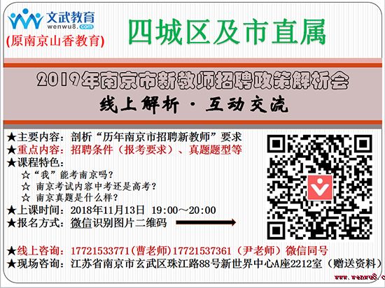 (5)本次筆試成績作為應(yīng)聘建鄴區(qū)教育局所屬學(xué)校教師的必備條件,在2019年度內(nèi)有效。